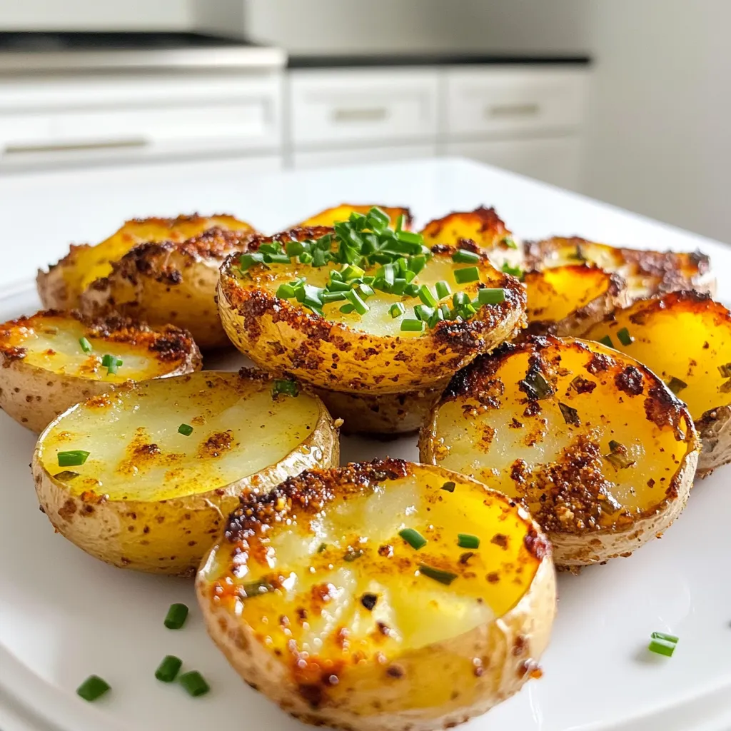 To make Air Fryer Ranch Potato Bites, gather these ingredients: - 1 pound baby potatoes, halved - 2 tablespoons olive oil - 2 tablespoons ranch seasoning mix - 1 teaspoon garlic powder - 1 teaspoon onion powder - ½ teaspoon smoked paprika - Salt and pepper to taste - Fresh chives or parsley, chopped (for garnish) You can easily swap some ingredients. If you don’t have baby potatoes, use regular potatoes. Just cut them into smaller pieces. For olive oil, try avocado oil or canola oil. If ranch seasoning is not on hand, mix dried herbs like dill and parsley with some salt. Garlic and onion powder can be replaced with fresh garlic or onion, but use less. Smoked paprika adds a nice touch, but regular paprika works too. Each serving of Air Fryer Ranch Potato Bites has about: - Calories: 180 - Protein: 3g - Carbohydrates: 26g - Fat: 7g - Fiber: 3g - Sugars: 1g These bites are a tasty snack. They have good carbs and healthy fats. Enjoy them in moderation for a balanced diet. To make Air Fryer Ranch Potato Bites, start with fresh baby potatoes. You need one pound of these small gems. First, wash them well and then slice each potato in half. This helps them cook evenly and get crispy. In a large bowl, take two tablespoons of olive oil. Pour the oil over the potato halves. Toss them gently until every piece is coated. Next, add two tablespoons of ranch seasoning mix. This gives the potatoes a tasty flavor. Then, sprinkle one teaspoon each of garlic powder and onion powder. Finally, add half a teaspoon of smoked paprika, plus salt and pepper to taste. Mix everything until the potatoes are well coated in the spices. Now that your potatoes are ready, it's time to preheat the air fryer. Set it to 400°F (200°C) and let it heat for about five minutes. Preheating is key for getting that crispy texture. While the air fryer warms up, you can prepare the potatoes, saving time for later. Once the air fryer is hot, place the seasoned potato halves in the basket. Make sure to spread them out in a single layer. Avoid crowding the basket; this helps them cook evenly. Close the air fryer and cook for 15 to 20 minutes. At the halfway mark, shake the basket gently to move the potatoes around. This ensures they brown nicely on all sides. When they’re golden and crispy on the outside but tender inside, they are done. Carefully remove the potato bites and let them cool for a couple of minutes. For a finishing touch, garnish with fresh chives or parsley before serving. Enjoy your tasty snack! For crispy potato bites, start by cutting the baby potatoes in half. This increases the surface area for crispiness. Toss them well with olive oil. Make sure each potato half gets a good coat. Don’t overcrowd the air fryer basket. Give each piece space to breathe. This helps hot air circulate and crisp them up. Shake the basket halfway through cooking. This ensures even crispiness on all sides. Aim for a golden color on the outside and a tender inside. Ranch seasoning is a star here, but you can mix it up. Try adding some cayenne pepper for heat. You can use different herbs like dill or thyme for a fresh taste. If you want a smokier flavor, more smoked paprika works wonders. Adjust salt and pepper to your liking. Fresh garlic adds great taste, so consider using minced garlic for an extra kick. Always taste as you go to find your perfect mix. These potato bites shine as a snack or side dish. Serve them with a side of ranch dressing for dipping. They pair great with grilled chicken or burgers. Add a fresh salad to make a complete meal. For a fun twist, top them with cheese and jalapeños. Fresh chives or parsley as a garnish adds color and flavor. Enjoy them hot for the best taste! {{image_2}} You can change up the flavor of your ranch potato bites. Try using taco seasoning for a zesty twist. A sprinkle of Cajun spice brings a kick. You can even use Italian seasoning for a herby taste. Just mix your choice into the olive oil before coating the potatoes. This small change can make a big difference. While baby potatoes work great, other types can shine too. Yukon gold potatoes give a buttery flavor. Red potatoes add a nice color and sweetness. You can even use sweet potatoes for a healthier option. Just remember to cut them into similar sizes for even cooking. Air frying is fast and makes the potatoes crispy. In an oven, the cooking time is longer, but you can make larger batches. If you use the oven, set it to 425°F (220°C). Spread the potatoes on a baking sheet, and bake for about 25-30 minutes. Shake them halfway through to get that golden color. Both methods yield tasty results; it just depends on your time and tools. After enjoying your Air Fryer Ranch Potato Bites, store any leftovers in an airtight container. Let them cool first to avoid steam buildup. Keep the container in the fridge for up to three days. This way, you can enjoy those tasty bites again! To reheat, place the potato bites back in the air fryer. Set it to 350°F (175°C) and cook for about 5-7 minutes. This method keeps them crispy. You can also use a microwave, but they may lose their crunch. If you choose the microwave, heat in short bursts of 30 seconds until warm. You can freeze Air Fryer Ranch Potato Bites for up to three months. To do this, let them cool completely. Then, place them in a freezer bag and remove as much air as possible. When you’re ready to eat, thaw them in the fridge overnight. Reheat them in the air fryer to get that crispy texture back. Enjoy your snack anytime! You should cook air fryer ranch potato bites for 15 to 20 minutes. Set your air fryer to 400°F (200°C). Shake the basket halfway through cooking. This helps them cook evenly. They should be golden and crispy when done. Yes, you can make these potatoes ahead of time. Cook them fully and let them cool. Store them in an airtight container in the fridge. They will stay fresh for up to three days. Reheat them in the air fryer for a crispy finish. Most air fryers work wel