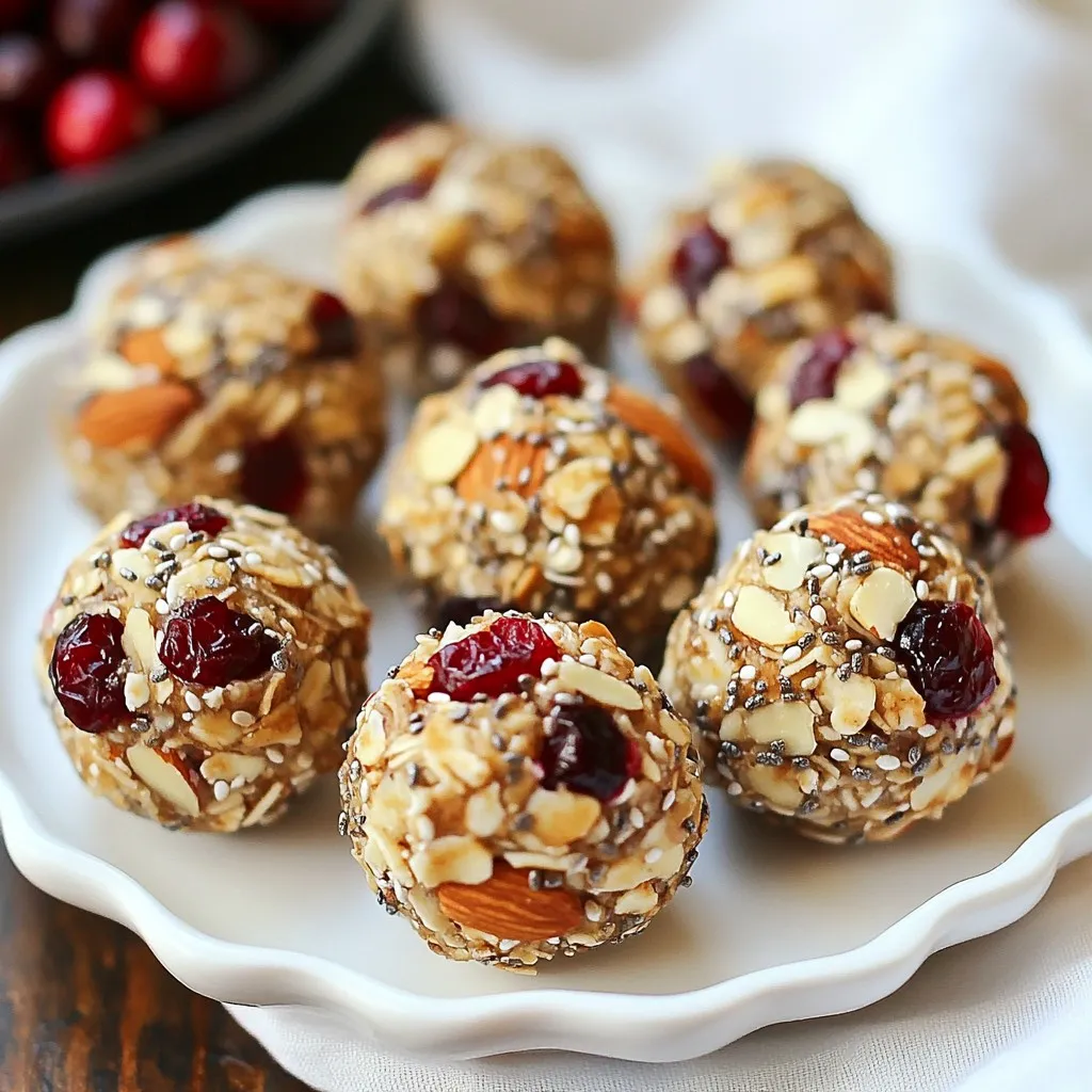Healthy and delicious energy bites made with oats, almond butter, and cranberries.