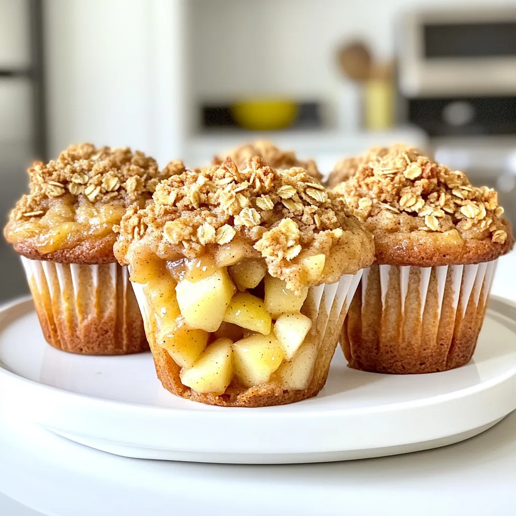 For the dry mix, you need: - 1 ½ cups all-purpose flour - 1 cup rolled oats - 1 cup brown sugar, packed - 2 teaspoons baking powder - 1 teaspoon baking soda - ½ teaspoon salt - ½ teaspoon cinnamon These ingredients create a strong base for your muffins. The flour and oats add structure and texture. Brown sugar brings sweetness and moisture, while baking powder and baking soda help the muffins rise. Salt and cinnamon enhance the flavors. For the wet mix, gather: - 1 cup buttermilk - ½ cup vegetable oil - 2 large eggs - 1 teaspoon vanilla extract - 2 medium apples, peeled and diced (like Granny Smith or Honeycrisp) - ½ cup chopped walnuts or pecans (optional) - 1 tablespoon lemon juice The buttermilk keeps the muffins moist and fluffy. Oil adds richness, and eggs bind everything together. Vanilla extract gives a sweet aroma. The diced apples bring natural sweetness and a juicy bite. Lemon juice adds brightness, and nuts give a nice crunch. For the crisp topping, mix together: - ½ cup brown sugar - ½ cup flour - ½ cup rolled oats - ½ teaspoon cinnamon - ¼ cup cold butter, cubed This topping adds a delightful crunch. Brown sugar and flour create a crumbly texture, while oats add chewiness. Cinnamon brings warmth, and cold butter helps form those perfect crumbs. You’ll love how it contrasts with the soft muffins beneath. First, heat your oven to 375°F (190°C). This is the perfect temp for baking. While the oven warms up, get your muffin tin ready. You can use paper liners or spray the tin with non-stick spray. This helps the muffins come out easily. In a big bowl, mix the dry ingredients. Add 1 ½ cups of flour, 1 cup of oats, 1 cup of brown sugar, 2 teaspoons of baking powder, 1 teaspoon of baking soda, ½ teaspoon of salt, and ½ teaspoon of cinnamon. Whisk them together until they blend well. This step is key for a fluffy muffin. In another bowl, combine the wet ingredients. Use 1 cup of buttermilk, ½ cup of vegetable oil, 2 large eggs, and 1 teaspoon of vanilla extract. Mix them until they are smooth. Slowly pour this mixture into the dry ingredients. Stir gently until just combined. Do not overmix! This keeps your muffins light. Now, it’s time to add some flavor. Fold in 2 diced apples, which you should peel first. You can use Granny Smith or Honeycrisp apples for a sweet-tart taste. If you like nuts, add ½ cup of chopped walnuts or pecans. Don’t forget to squeeze in 1 tablespoon of lemon juice. This brightens the flavor. For the topping, grab another bowl. Mix ½ cup of brown sugar, ½ cup of flour, ½ cup of oats, and ½ teaspoon of cinnamon. Then, cut in ¼ cup of cold, cubed butter. Use your fingers or a fork to mix until it looks crumbly. This will add a great crunch to your muffins. Now it’s time to bake! Spoon the batter into your muffin tin, filling each cup about ¾ full. Sprinkle the crisp topping generously over each muffin. Bake for 20-25 minutes. To check if they are done, insert a toothpick in the center. If it comes out clean, they are ready! Let the muffins cool for about 5 minutes in the pan. After that, transfer them to a wire rack. Enjoy your warm, delicious muffins! To get the best muffins, focus on mixing. Mix dry and wet ingredients just enough. If you overmix, the muffins may be tough. The batter should be lumpy. This helps keep them soft and fluffy. Use room temperature eggs and buttermilk for better blending. The apples add moisture, so pick juicy ones. Granny Smith or Honeycrisp work great here. For more flavor, try adding spices. A pinch of nutmeg can boost the warmth. You could also swap some brown sugar for maple syrup. This gives a nice twist to the taste. If you want a hint of citrus, add more lemon juice. It brightens the flavors and balances the sweetness well. Don't forget to add a splash of vanilla for richness. Serving your muffins with flair makes them shine. Dust with powdered sugar for a touch of elegance. A dollop of whipped cream on top adds creaminess. For a fun twist, pair with vanilla ice cream. This makes a lovely dessert option. Arrange muffins on a decorative plate for a bakery-style look. The more inviting they appear, the more people will enjoy them! {{image_2}} You can switch the apples for other fruits. Pears or berries work great. This change adds new flavors. Mixed fruits also create a fun twist. Try using ripe bananas, too. They add sweetness and moisture. Remember to adjust the lemon juice for balance. This keeps your muffins fresh and bright. If you don’t like walnuts or pecans, try different nuts. Almonds or hazelnuts add a nice crunch. You can even skip the nuts if you prefer. Seeds like pumpkin or sunflower work well, too. Just ensure you chop them into small pieces for even mixing. This gives you a tasty bite every time. To make gluten-free muffins, use a gluten-free flour blend. Look for one that contains xanthan gum. This helps mimic the texture of regular flour. You can also replace the oats with gluten-free oats. Make sure to check labels to avoid gluten. These small changes keep the muffins soft and delicious. To keep your apple crisp muffins fresh, place them in an airtight container. This helps keep them moist. You can store them at room temperature for up to three days. If you want them to last longer, consider refrigerating them. Just remember to let them cool completely before packing them away. These muffins freeze well, making them a great make-ahead option. Wrap each muffin in plastic wrap, then place them in a freezer-safe bag. They can last in the freezer for up to three months. When you’re ready to enjoy them, simply thaw them overnight in the fridge. To reheat, preheat your oven to 350°F (175°C). Place the muffins on a baking sheet and heat for about 10 minutes. This will help revive their warmth and crispiness. You can also use a microwave, but be mindful. Heat them for just 15 to 30 seconds to avoid making them tough. Enjoy your delightful treats warm! Yes, you can use milk mixed wi