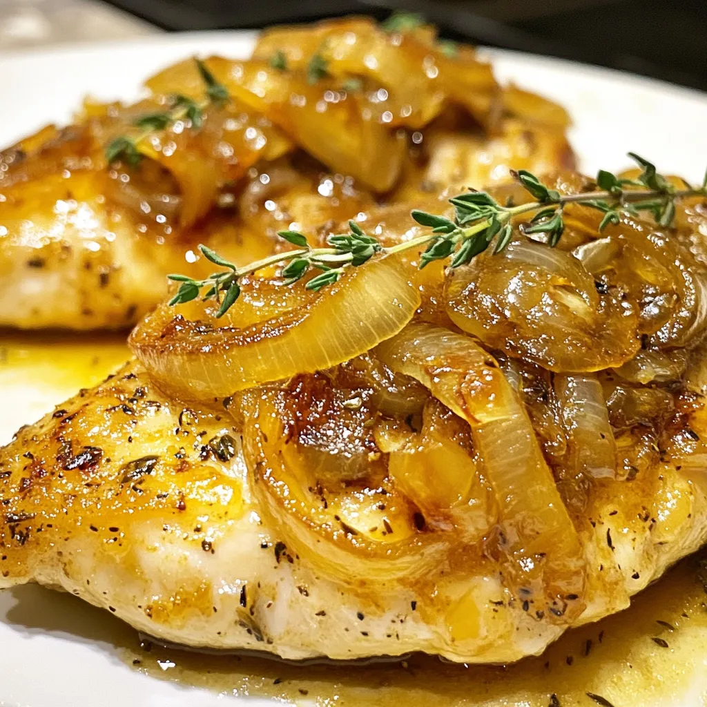 Arrange the chicken on a large platter, drizzle with any remaining caramelized onions, and sprinkle with fresh thyme for a touch of color. Serve with a side of roasted vegetables or a light salad.