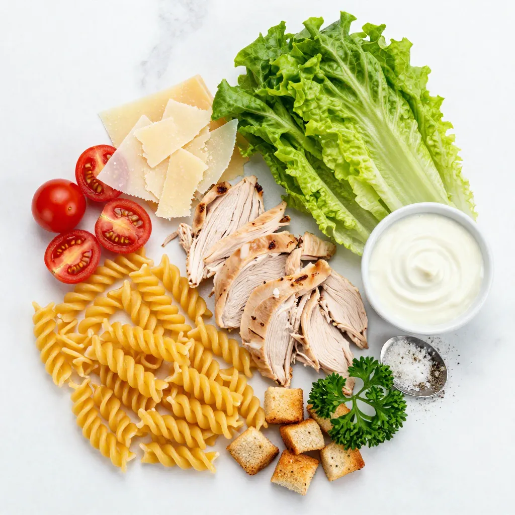 Main Ingredients for Chicken Caesar Pasta Salad