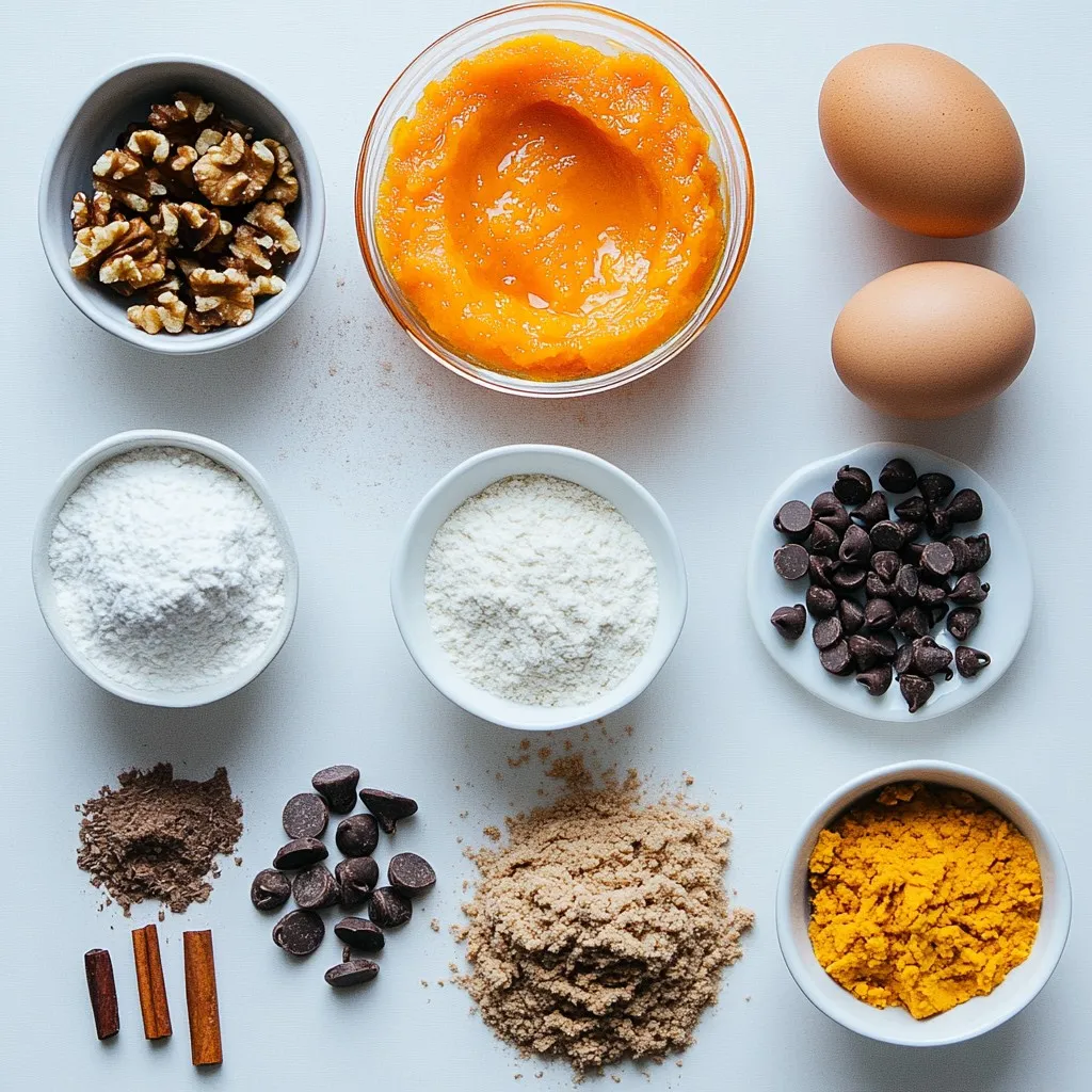 To make a delicious chocolate chip pumpkin bread, gather these simple ingredients: