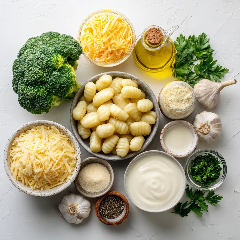 To create this creamy broccoli cheddar gnocchi, gather all the ingredients first. The gnocchi can be store-bought or homemade, depending on your time and skill. Broccoli adds great texture and color. Sharp cheddar cheese gives a strong, rich taste. Heavy cream makes the sauce smooth and creamy.
