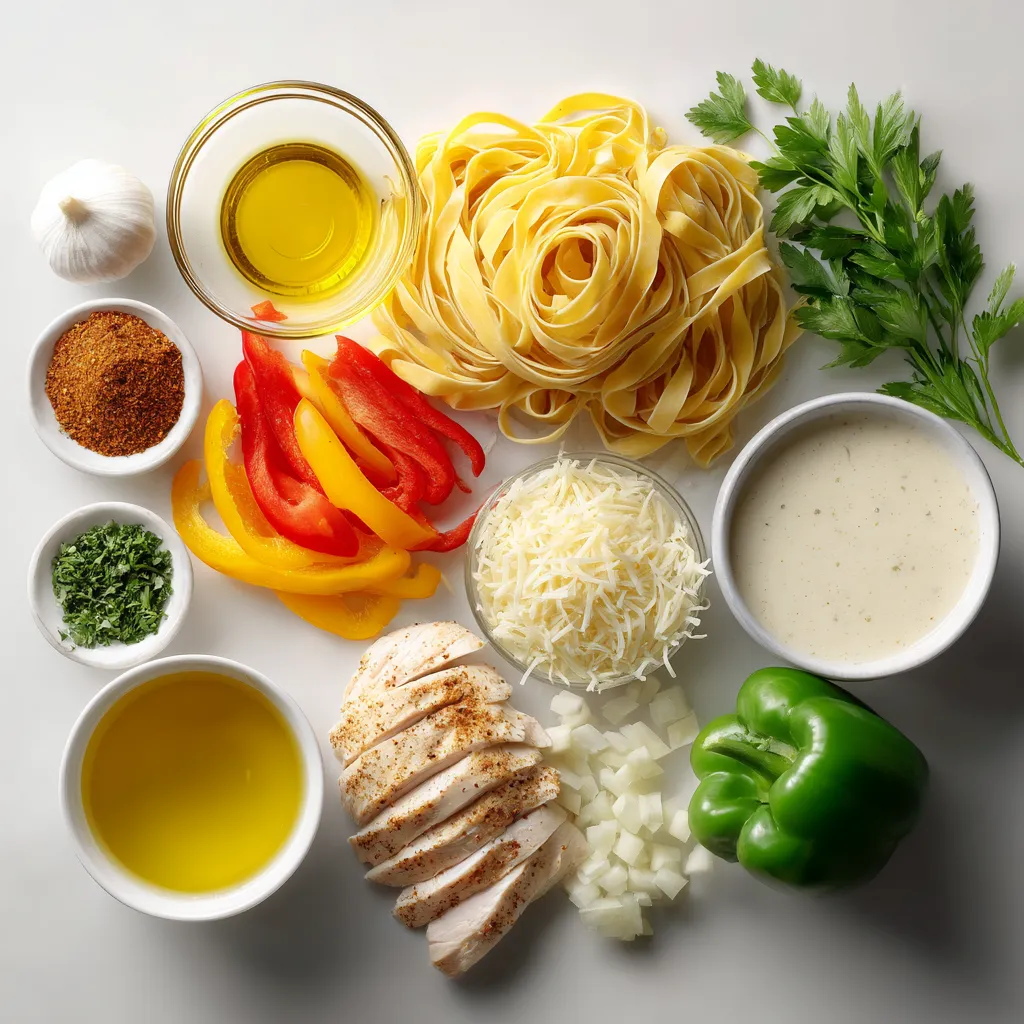 For the sauce, you will need heavy cream and chicken broth. These make the dish creamy and smooth. You also need bell peppers and an onion. They add color and taste. Lastly, grab some garlic for an extra layer of flavor. Don’t forget the Parmesan cheese! It gives the sauce a lovely finish.