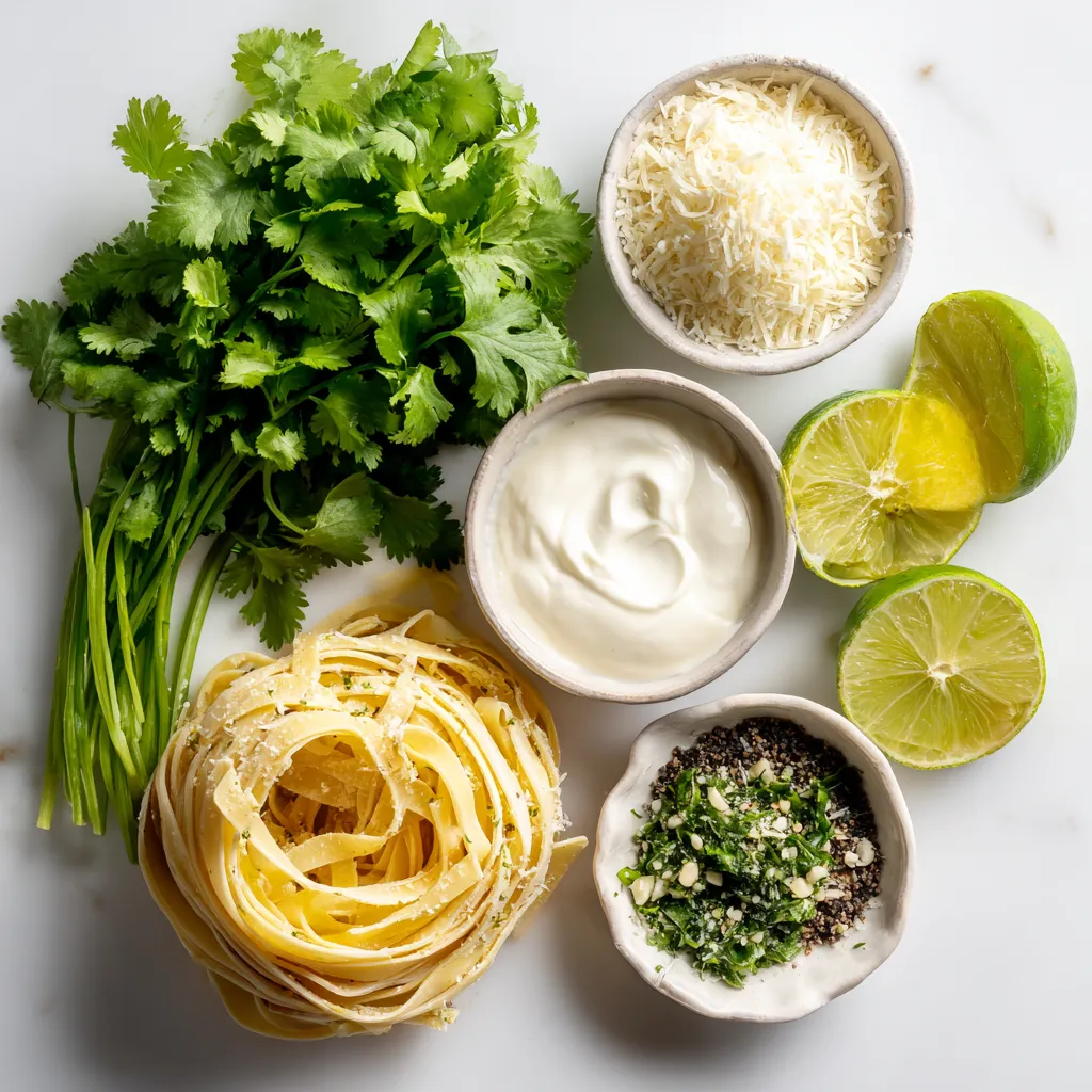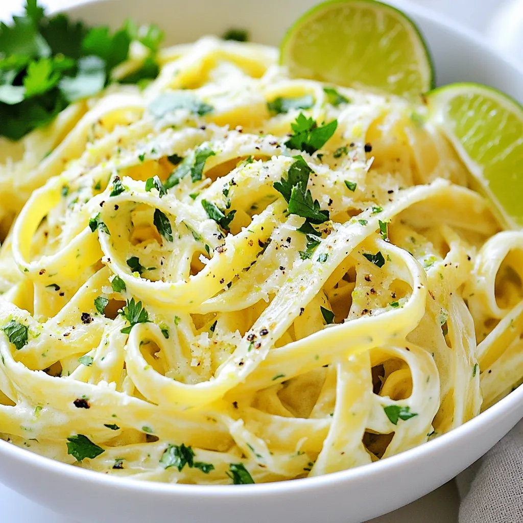 A delicious and creamy pasta dish with fresh cilantro and lime flavors.