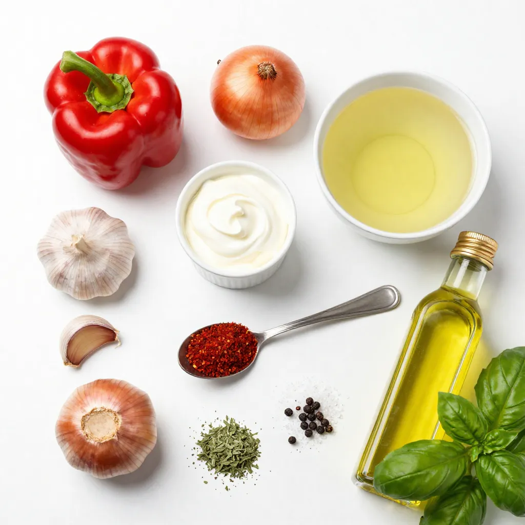 The red bell peppers are the star of this dish. They give it a rich, sweet flavor. Roasting them brings out their natural sweetness. The onion and garlic add depth to the sauce. They create a warm, inviting aroma.
