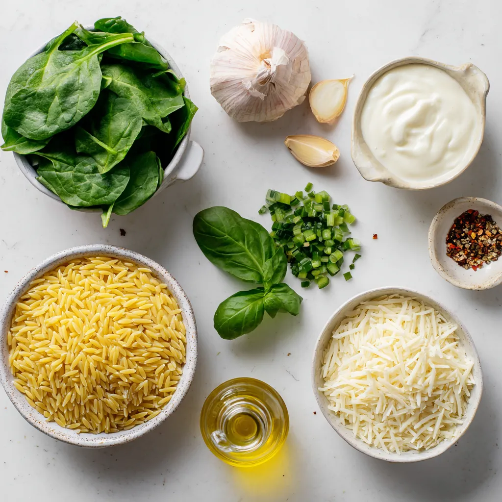 To make creamy spinach parmesan orzo, you will need: