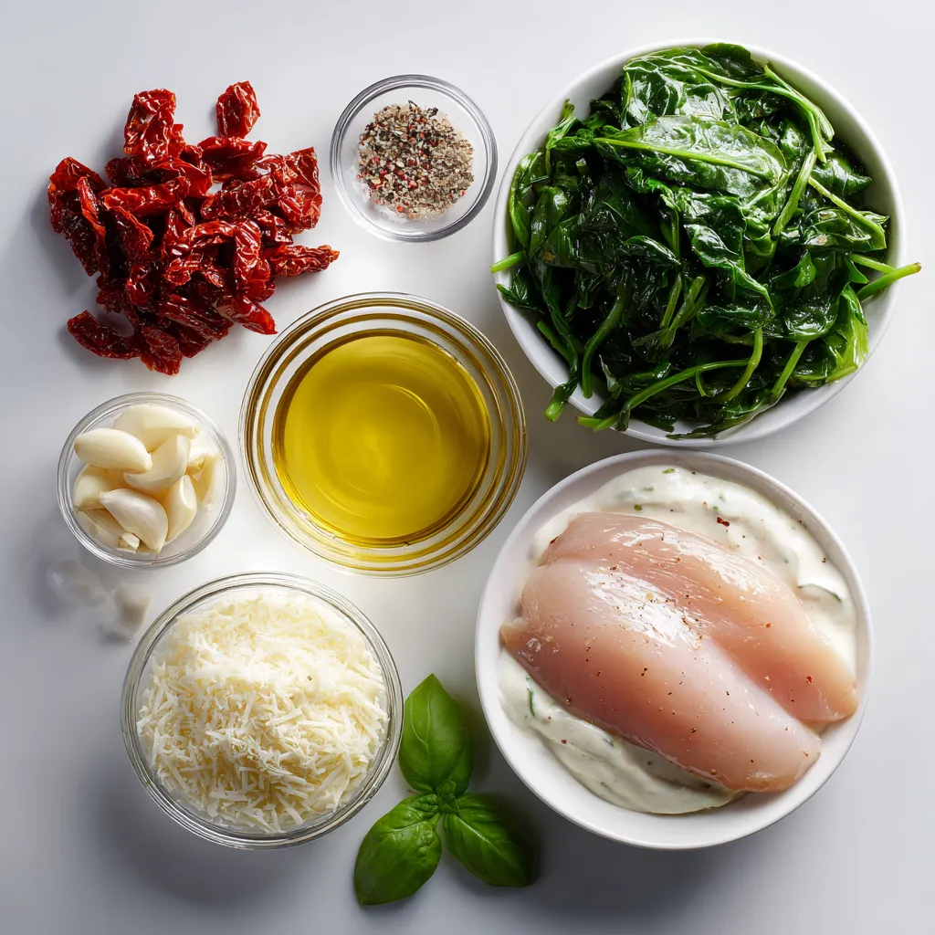 To make creamy spinach sun-dried tomato chicken, gather these ingredients: