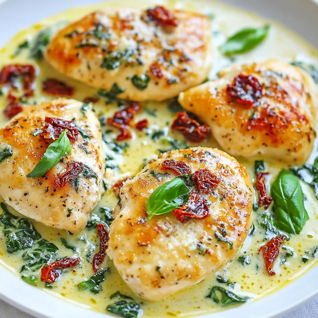 A delicious and creamy chicken dish with spinach and sun-dried tomatoes.