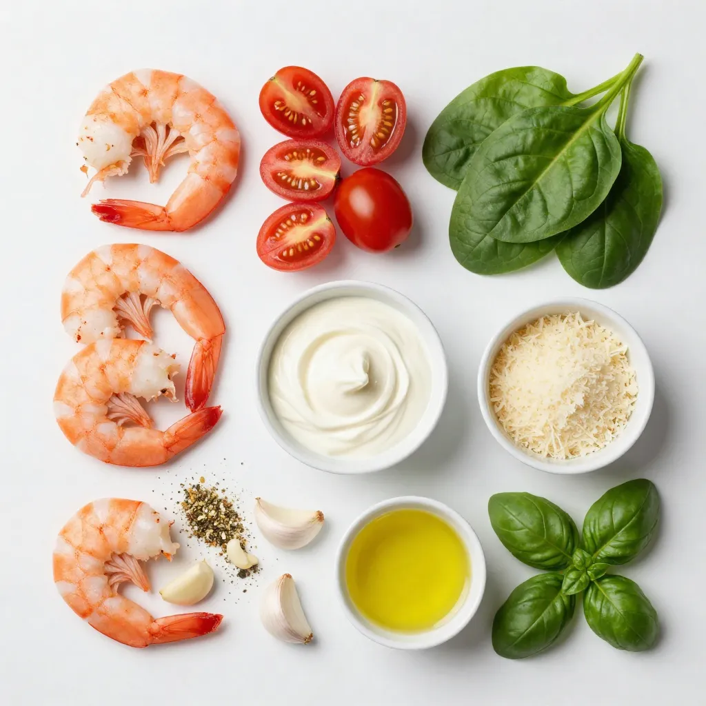 Each ingredient plays a key role. The shrimp gives a nice protein base. Olive oil adds richness. Garlic brings a strong flavor. Cherry tomatoes add sweetness and color. Spinach gives a fresh touch. Heavy cream makes it rich and creamy. Parmesan adds a salty depth. Italian seasoning ties all the flavors together. Salt and pepper enhance everything, while basil gives a fresh finish.