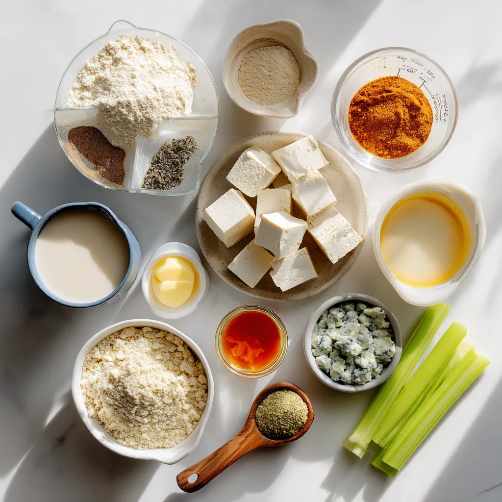 Getting the right ingredients is key for crispy buffalo tofu bites. First, you need a block of firm tofu. Press it to remove excess water. This step helps it get crispy. Next, gather all-purpose flour and spices. Garlic powder, onion powder, cayenne pepper, and paprika add great flavor. Don’t forget salt and pepper to taste.