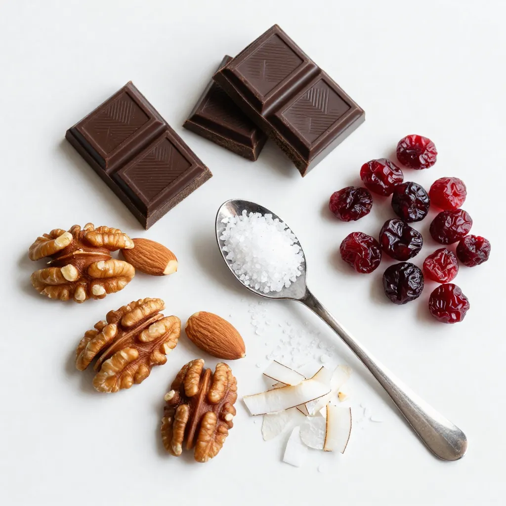 Dark chocolate is the star of this treat. It has rich flavor and pairs well with nuts and fruit. Choose chocolate that is at least 70% cocoa for the best taste. Mixed nuts add crunch and healthy fats. You can use almonds, walnuts, or pecans based on your liking. Dried fruits like cranberries or cherries add a sweet touch. They balance the chocolate’s bitterness. Coconut flakes give a tropical feel and nice texture. Finally, flaky sea salt enhances the flavor. It makes every bite a delight.