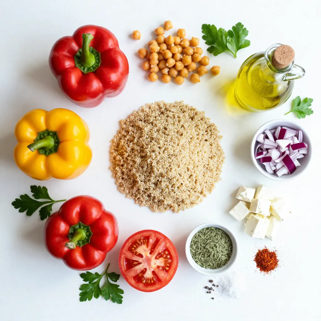 To make Greek stuffed bell peppers, you will need: - 4 large bell peppers (any color) - 1 cup cooked quinoa - 1 cup canned chickpeas, rinsed and drained - 1 cup diced tomatoes (fresh or canned) - ½ cup red onion, finely chopped These ingredients blend to create a colorful and nutritious dish. The bell peppers can be red, yellow, or green. Each color adds a unique flavor and makes the dish pop. You will also need these key spices and seasonings: - 2 teaspoons dried oregano - 1 teaspoon garlic powder - ½ teaspoon smoked paprika - 2 tablespoons olive oil - Salt and pepper to taste These spices bring warmth and depth to the dish. Oregano gives a classic Greek taste. Smoked paprika adds a hint of sweetness and a lovely color. For the perfect finishing touch, consider these garnishes: - 1 cup feta cheese, crumbled - Fresh parsley or basil, for garnish Feta cheese adds a creamy and salty contrast to the dish. Fresh herbs brighten the flavors and make the peppers look even more appealing. {{ingredient_image_1}} 1. Preheat your oven to 375°F (190°C). This step is key for cooking the peppers just right. 2. Next, grab 4 large bell peppers. Cut off the tops and remove the seeds. If needed, trim the bottoms so they stand up straight. This keeps them stable in the oven. 3. In a large mixing bowl, combine the filling. Use 1 cup cooked quinoa, 1 cup canned chickpeas (rinsed and drained), 1 cup diced tomatoes, and ½ cup red onion. Don't forget 1 cup crumbled feta cheese for that creamy texture! 4. Now drizzle in 2 tablespoons olive oil. Add 2 teaspoons dried oregano, 1 teaspoon garlic powder, ½ teaspoon smoked paprika, and season with salt and pepper. Mix everything until well combined. 5. Take a spoon and carefully fill each bell pepper with the mixture. Pack it in gently but make sure it's full! 6. Place the stuffed peppers upright in a baking dish. If you have extra stuffing, place it around the peppers for more flavor. 7. Cover the dish with aluminum foil. Bake in the preheated oven for 30 minutes. 8. After 30 minutes, remove the foil. Bake for an extra 15-20 minutes until the peppers are tender and the tops are golden. 9. When done, take them out and let them cool for a few minutes. This makes them easier to handle. 10. For a lovely touch, garnish with freshly chopped parsley or basil. It adds color and flavor! Serve on a rustic wooden board to impress your guests. If you want to switch things up, you can change the quinoa and chickpeas. For quinoa, use rice, couscous, or farro. Each adds a different taste and texture. If you don’t have chickpeas, white beans or lentils work well too. For a dairy-free option, swap feta cheese with a non-dairy cheese. Look for brands that make almond or coconut-based feta. These will still give you a creamy texture and flavor. Baking is a great way to cook stuffed peppers. It gives the peppers a soft texture. However, grilling adds a smoky flavor that many love. If you grill, keep an eye on them so they don't burn. You can also use a slow cooker for a set-and-forget meal. Just layer the stuffed peppers inside and cook on low for 4-6 hours. This method keeps them juicy and full of flavor. Want to make your Greek stuffed bell peppers even tastier? Add spices like crushed red pepper for heat or fresh herbs like dill or mint for a twist. You can also top them with a drizzle of balsamic glaze for a sweet finish. Consider serving with olives or a dollop of tzatziki sauce for extra flavor. These little touches make a big difference in your meal. Pro Tips Choose Colorful Peppers: Using a mix of red, yellow, and green bell peppers not only enhances the visual appeal of your dish but also adds a slight variation in flavor. Customize Your Filling: Feel free to add other ingredients like olives, spinach, or nuts to the filling for added texture and flavor. Make Ahead: You can prepare the stuffing in advance and refrigerate it. Just stuff the peppers and bake them when you're ready to serve. Use Fresh Herbs: Fresh parsley or basil not only makes for a beautiful garnish but also enhances the overall flavor profile of the dish. {{image_2}} You can change the filling for Greek stuffed bell peppers to suit your taste. For meat lovers, ground turkey or lamb adds a rich flavor. Simply brown the meat in a pan before mixing it with quinoa, chickpeas, and spices. If you prefer a meatless option, you can skip the meat and use more vegetables. Try adding sautéed mushrooms or spinach for extra nutrition. For a vegan twist, replace feta cheese with a plant-based alternative. This keeps the dish hearty and satisfying without animal products. Greek stuffed bell peppers can also reflect different regions. You can add Mediterranean ingredients like olives, capers, or sun-dried tomatoes. These add a salty, tangy flavor that brightens up the dish. You may even blend in some spices from other cuisines. For instance, a hint of cumin or coriander can give a unique flair. This mix of flavors makes your stuffed peppers exciting and delicious. The seasons can inspire your stuffed peppers too. In summer, add fresh vegetables like zucchini or corn to the filling. These ingredients create a light, fresh taste. In colder months, warming spices like cinnamon or nutmeg can enhance the dish. You can also use roasted root vegetables for a hearty filling. By adjusting the ingredients, you keep this dish fun and relevant all year round. To keep your Greek stuffed bell peppers fresh, store them in the fridge. Place them in an airtight container. They will last about 3 to 5 days. Make sure they cool down to room temperature before sealing. This helps prevent moisture build-up, which can lead to sogginess. If you want to enjoy these stuffed peppers later, freezing is a great option. Wrap each pepper in plastic wrap, then place them in a freezer-safe bag. This keeps them fresh for up to 3 months. When you’re ready to eat, thaw them in the fridge overnight. To reheat, you can bake them from frozen. Preheat y