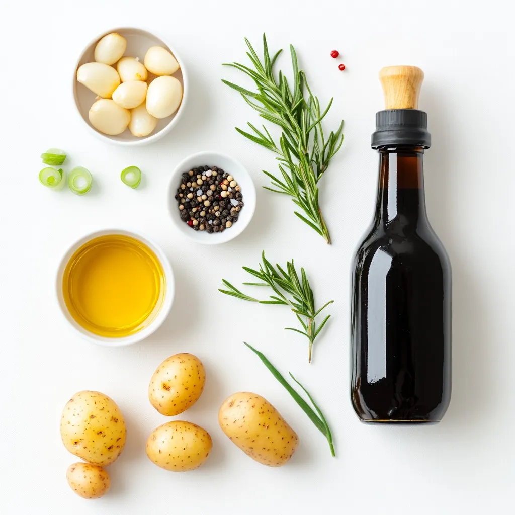 While the potatoes cool, let’s make the sauce. In a small bowl, mix together 4 minced garlic cloves, 2 tablespoons of honey, and 2 tablespoons of olive oil. Add 1 teaspoon of soy sauce and 1 teaspoon of chopped fresh rosemary. Stir well to combine. Set this flavorful mixture aside for later.
