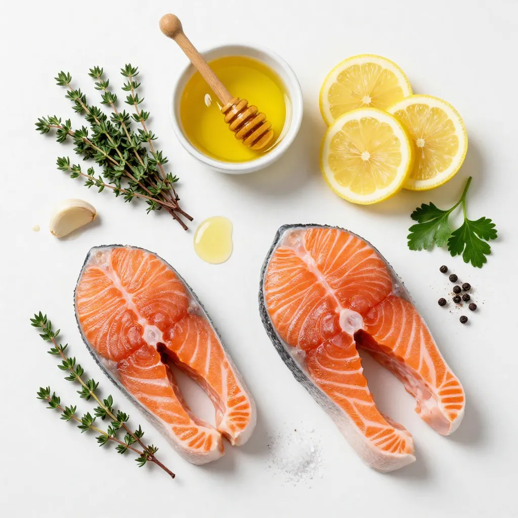 Olive oil helps the salmon cook evenly and adds a nice finish. Fresh thyme leaves provide an earthy note, but dried thyme works too. Don’t forget salt and pepper; they are essential for seasoning. For a lovely touch, you can garnish with lemon slices and fresh parsley.