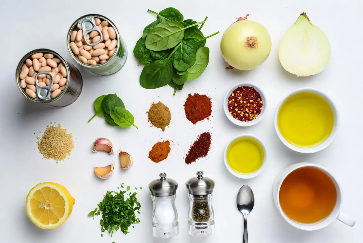 White beans are the star of this dish. They give you protein and fiber. I prefer using cannellini or great northern beans. They are soft and creamy. Fresh spinach adds a vibrant color and nutrients. The onion and garlic provide a strong base of flavor.