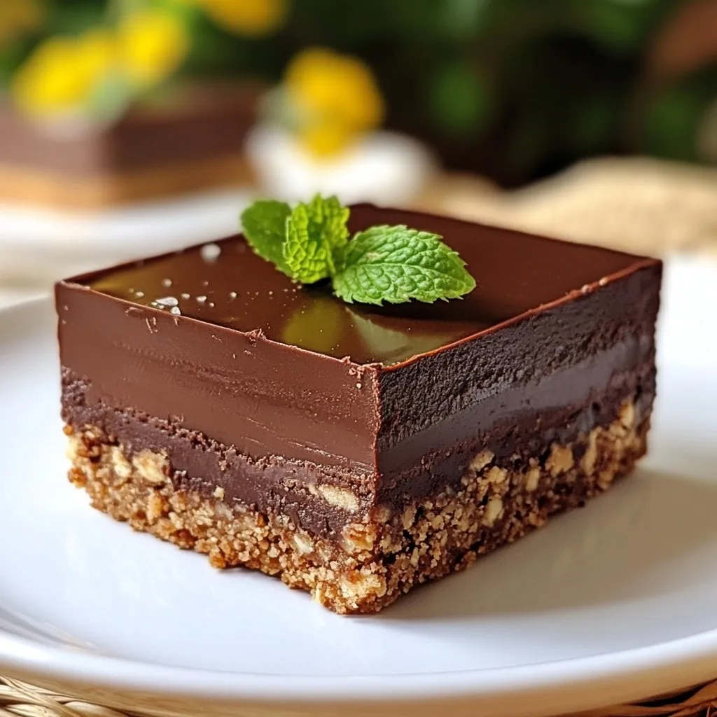 - 1 cup rolled oats - 1 cup almond flour - 1/2 cup maple syrup - 1/2 cup natural peanut butter (or almond butter) - 1/4 cup cocoa powder - 1/4 teaspoon salt - 1/2 teaspoon peppermint extract - 1/2 cup dark chocolate chips - 1 tablespoon coconut oil To make No-Bake Chocolate Mint Bars, gather these ingredients. You will need rolled oats, almond flour, and maple syrup. Peanut butter adds creaminess, while cocoa powder gives rich chocolate flavor. A pinch of salt enhances all tastes, and peppermint extract adds that fresh mint kick. You can choose dark chocolate chips for a more intense flavor. The coconut oil helps the chocolate melt smoothly. When you mix these ingredients, you create a tasty, no-bake dessert that is sure to please. - Calories per serving: About 150 - Nutritional breakdown: - Carbs: 20g - Fats: 8g - Proteins: 4g - Potential allergens: Contains nuts (almond flour, peanut butter), and may have traces of gluten if not labeled gluten-free. Knowing the nutritional facts helps you enjoy these bars while keeping health in mind. Each bar gives a nice balance of carbs, fats, and proteins. Remember to check for allergens before serving. {{ingredient_image_1}} 1. Mixing dry ingredients Start by taking a large bowl. Add 1 cup of rolled oats, 1 cup of almond flour, 1/4 cup of cocoa powder, and 1/4 teaspoon of salt. Mix these dry ingredients well. Make sure there are no clumps. 2. Preparing the wet mixture In a separate bowl, combine 1/2 cup of maple syrup, 1/2 cup of peanut butter, and 1/2 teaspoon of peppermint extract. Stir this mixture until it is smooth and creamy. This will give our bars a rich flavor. 3. Combining wet and dry ingredients Pour the wet mixture into the bowl with the dry ingredients. Mix everything together until the dry ingredients are fully coated. You want it to form a sticky dough that holds together. 1. Lining the baking dish Grab an 8x8-inch baking dish. Line it with parchment paper, leaving some paper hanging over the edges. This will help you lift the bars out later. 2. Pressing down the mixture Transfer the sticky mixture into the lined dish. Use a spatula or your hands to press it down firmly. Make sure it is even and packed tightly. This helps the bars hold their shape. 3. Melting the chocolate and coconut oil In a microwave-safe bowl, add 1/2 cup of dark chocolate chips and 1 tablespoon of coconut oil. Microwave this in 30-second intervals. Stir in between until it is fully melted and smooth. 1. Refrigeration time Pour the melted chocolate over the pressed mixture in the baking dish. Spread it evenly with a spatula. Place the dish in the fridge for at least 2 hours. This time allows the bars to set completely. 2. Cutting and serving suggestions Once set, lift the bars from the dish using the parchment paper. Cut them into squares or bars. This is the fun part, and you can make them any size you like. 3. Optional garnishes For an extra touch, drizzle some melted dark chocolate on top. You could also sprinkle some crushed mint leaves for added flavor. These garnishes make the bars look even more tempting. To create perfect no-bake chocolate mint bars, I suggest adjusting the sweetness and flavors to suit your taste. You can add more maple syrup if you want it sweeter. For a stronger mint flavor, add an extra drop of peppermint extract. Just remember, a little goes a long way. Ensure the right consistency by mixing the wet and dry ingredients well. The dough should be sticky but not too wet. If it feels too dry, you can add a splash of water or more maple syrup. One common mistake is overmixing the ingredients. This can change the texture of your bars. Mix just until everything is combined. Another mistake is not pressing the mixture firmly into the dish. Pressing down helps the bars hold together better. Use your hands or a spatula to press it evenly. For this recipe, you need a few kitchen tools. A large mixing bowl is essential for combining the dry and wet ingredients. A spatula helps with mixing and pressing down the mixture. You should also have a microwave-safe bowl for melting the chocolate and coconut oil. For storage, an airtight container is best. A baking dish lined with parchment paper makes it easy to lift out your bars later. Pro Tips Store in the Fridge: These bars are best kept in the refrigerator to maintain their firmness and freshness. They can last up to a week when stored properly. Experiment with Nut Butters: Feel free to substitute peanut butter with almond butter or any nut butter of your choice for different flavor profiles. Add Texture: For added crunch, mix in some chopped nuts or seeds into the base before pressing it into the baking dish. Customize the Toppings: Get creative with your toppings! Consider adding crushed peppermint candies, coconut flakes, or even a sprinkle of sea salt for a unique touch. {{image_2}} You can change the taste of these bars in fun ways. Adding nuts or seeds can give a nice crunch. Chopped walnuts or sunflower seeds work great. You can also try different extracts. Vanilla or orange extract can add a new twist. If you want vegan bars, swap the honey for maple syrup. Use almond butter for a nut-free option. For gluten-free bars, check that the oats are certified gluten-free. Almond flour is naturally gluten-free and works well. These bars taste great with ice cream. A scoop of vanilla or mint chocolate chip pairs perfectly. You can also serve them with fresh fruits like strawberries or bananas. The fruit adds a nice balance to the rich chocolate. To keep your No-Bake Chocolate Mint Bars fresh, store leftovers in the fridge. Use an airtight container to prevent moisture loss. You can also wrap the bars in plastic wrap before placing them in the container. This extra layer helps keep them safe. These bars last about one week in the fridge. If you want to keep them longer, you can freeze them. They can stay good in the freezer for up to three months. Just cut them into squares first, wrap each piece in 