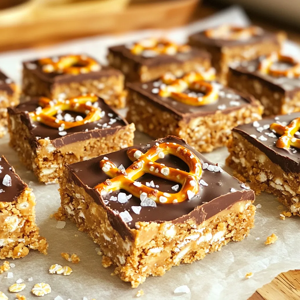 To save time, gather all your ingredients before starting. This makes the process smoother. You can crush pretzels and measure oats in advance. While the peanut butter mixture heats, prepare your baking dish. Lining it with parchment paper makes cleanup easy. After assembling, set a timer. This way, you can easily keep track of chilling time. These tips help you whip up these tasty bars in no time!