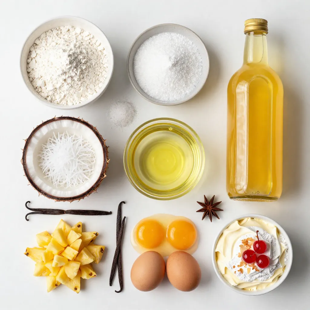 The pineapple juice brings that tropical flavor. Vegetable oil keeps the cupcakes moist. Eggs add richness and help bind everything together. Vanilla extract rounds out the taste with warmth and depth.