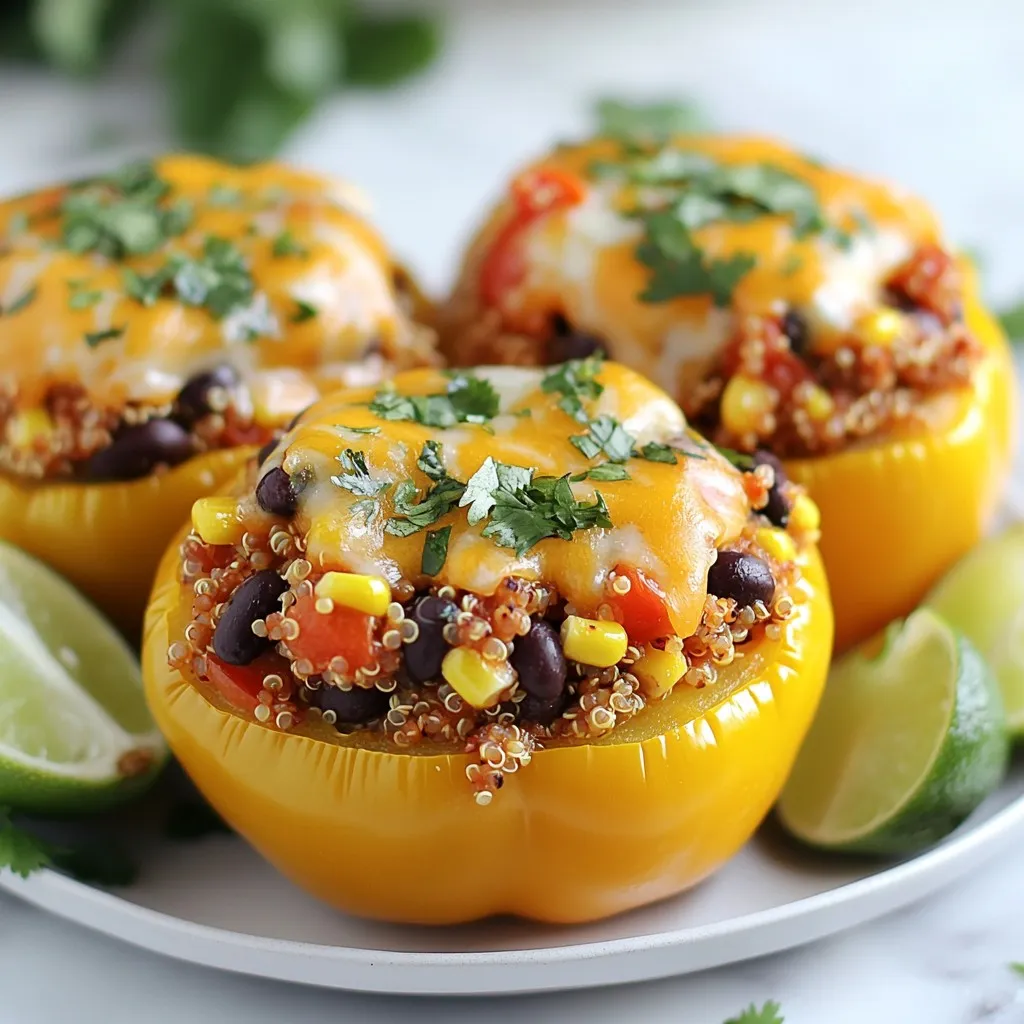 A vibrant and nutritious dish featuring bell peppers stuffed with a flavorful quinoa mixture.