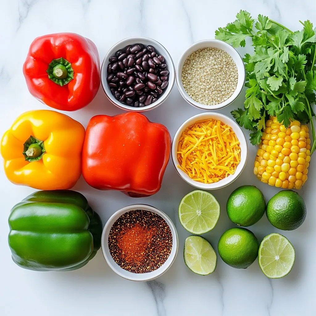 These ingredients create a balanced dish. The bell peppers bring color and crunch. Quinoa offers protein and texture. Black beans add fiber, while corn gives a sweet pop. Diced tomatoes bring moisture and flavor.