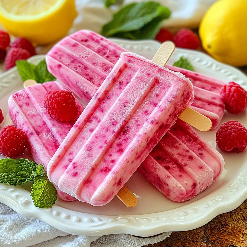 Serve the popsicles on a bright plate, garnished with fresh mint leaves and a few whole raspberries for a refreshing visual appeal.