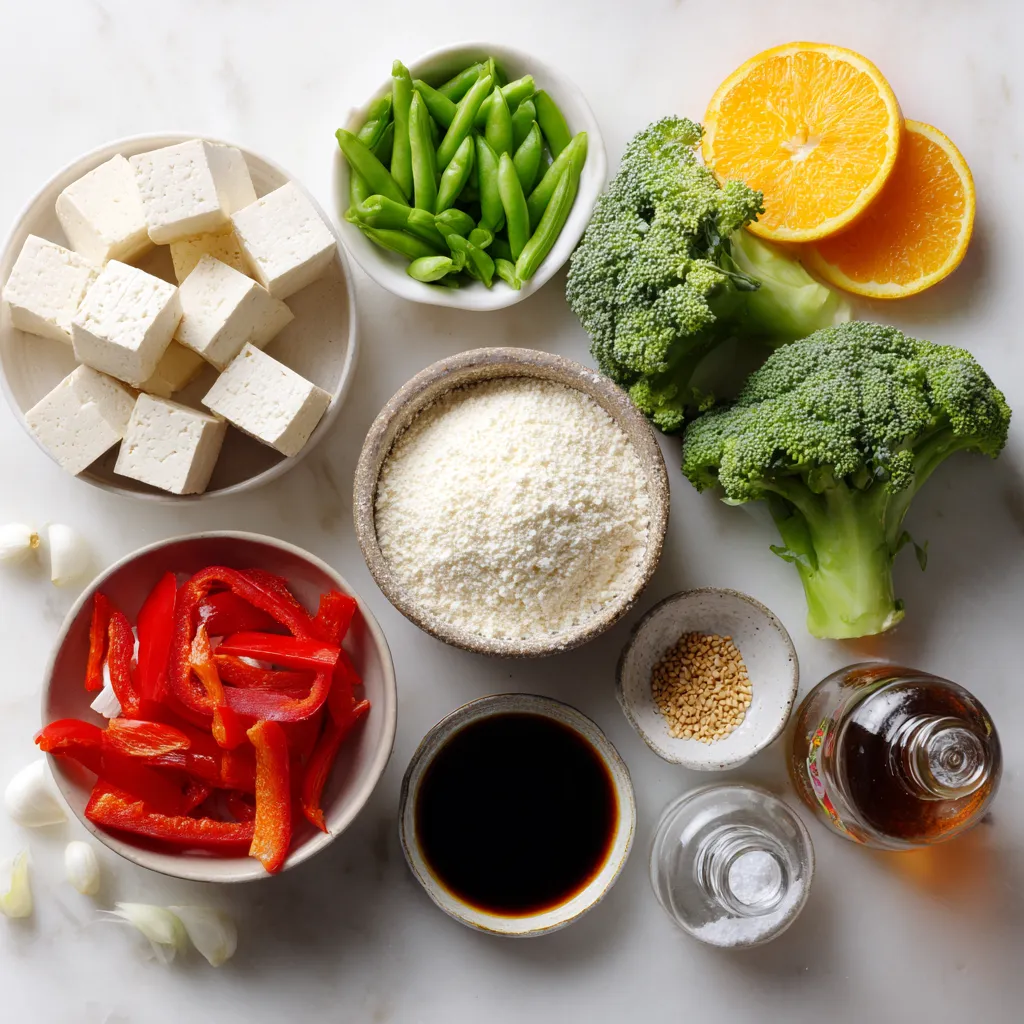 The main star of this dish is the tofu. Firm tofu gives the dish texture and protein. Pressing it removes water, helping it fry better. The sesame oil adds a rich, nutty flavor that complements the orange. Fresh orange juice and zest bring a bright, citrusy taste. The bell pepper, broccoli, and snap peas add color and crunch. Garlic and ginger provide warmth and depth.