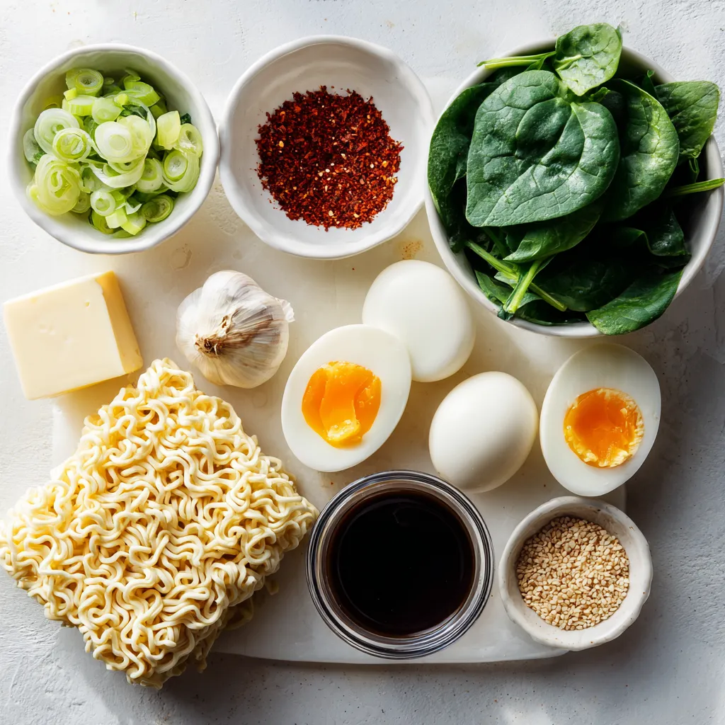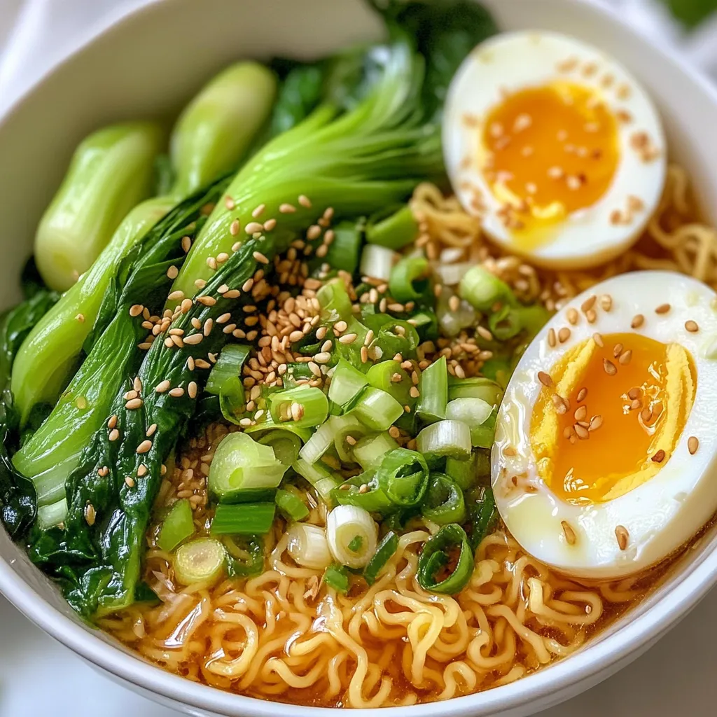 - 2 packs of instant ramen noodles (discard the seasoning packets) - 4 tablespoons unsalted butter - 6 cloves garlic, minced - 1 tablespoon red pepper flakes (adjust to taste) - 4 cups chicken or vegetable broth - 2 tablespoons soy sauce - 2 green onions, thinly sliced - 1 cup baby spinach or bok choy - Sesame seeds for garnish - Soft-boiled eggs (optional) I love using instant ramen noodles for this recipe. They cook quickly and soak up flavors well. Discard the seasoning packets since we will create our own rich taste. Unsalted butter gives the broth a creamy texture. The fresh garlic adds a strong, savory base. Red pepper flakes bring heat, but you can adjust this to your taste. The broth is crucial. Chicken or vegetable broth provides depth. Soy sauce adds a salty umami kick. Green onions and spinach or bok choy add freshness and color, making the dish pop. Finishing with sesame seeds adds a nice crunch. If you want, add soft-boiled eggs on top for extra protein and richness. You can swap in other vegetables like mushrooms or bell peppers if you prefer. If you need gluten-free noodles, look for rice noodles or gluten-free ramen. For a lighter dish, consider low-sodium broth options. To kick up the flavor, you can add a splash of lime juice or a dash of sesame oil. Fresh herbs like cilantro or basil add brightness too. Consider adding more spices like ginger or a spoonful of miso for extra depth. {{ingredient_image_1}} To start, fill a pot with water and bring it to a boil. Once boiling, add the instant ramen noodles. Cook them for about 3 to 4 minutes. You want them tender but not mushy. Keep an eye on the timer to avoid overcooking. After cooking, drain the noodles and set them aside. For best results, use a large pot. This allows the noodles to move freely. Stir them gently while cooking to prevent sticking. Next, grab a large skillet and place it over medium heat. Add 4 tablespoons of unsalted butter. Let it melt slowly. Once melted, add 6 cloves of minced garlic and 1 tablespoon of red pepper flakes. Sauté this mixture for 1 to 2 minutes. The goal is to make the garlic fragrant, not burnt. Stir it constantly to avoid any burning. This garlic butter sauce is the heart of the dish. It gives the ramen rich flavor and a lovely aroma. Now, pour in 4 cups of chicken or vegetable broth along with 2 tablespoons of soy sauce. Bring this mixture to a gentle simmer. Let it simmer for about 5 minutes to blend the flavors well. After the broth simmers, it’s time to add the cooked noodles. Gently stir to coat the noodles with the garlic butter broth. This step is crucial for flavor. Next, toss in 1 cup of baby spinach or bok choy. Cook for about 1 to 2 minutes until wilted. This adds color and nutrition to your ramen. For a great presentation, ladle the spicy garlic butter ramen into bowls. Top each bowl with sliced green onions and sesame seeds. If you like, add soft-boiled eggs for a nice touch. To serve, use a wide soup spoon or a deep bowl. This makes it easy to enjoy every bite. For an extra pop of flavor, drizzle some melted garlic butter on top before serving. To adjust spice levels, start small. Add red pepper flakes slowly. Taste as you go. You can make it mild or fiery. For a richer broth, add more soy sauce or a splash of mirin. This will deepen the taste. A dash of sesame oil can also boost flavor. When boiling noodles, use a big pot. This helps them cook evenly. Stir them gently to avoid sticking. For sautéing garlic, keep the heat medium. This helps prevent burning. If you're short on time, use leftover broth. It speeds up the cooking process. Get creative with garnishes. Try a sprinkle of sesame seeds or a drizzle of extra garlic butter. Use bright green onions for color. To plate like a pro, use a deep bowl. Layer the noodles first, then pour broth over. Add greens last for a fresh look. Pro Tips Adjust Spice Level: If you prefer a milder dish, reduce the amount of red pepper flakes or omit them entirely. You can always add more spice later if desired. Butter Quality Matters: Use high-quality unsalted butter for a richer flavor. If you want to experiment, try adding a flavored butter, like garlic herb butter, for an extra kick. Fresh Herbs Enhance Flavor: Consider adding fresh herbs like cilantro or basil just before serving. They add a delightful freshness that complements the rich garlic butter. Customize Your Toppings: Get creative with toppings—try adding sliced mushrooms, shredded carrots, or even a sprinkle of chili oil for additional flavor and texture. {{image_2}} You can boost your ramen with added protein. Chicken, shrimp, and tofu work well. - For chicken, use cooked, shredded pieces. - Shrimp cooks quickly and adds a nice taste. - Tofu is great for a vegetarian option. Just cube it and add to the broth. For vegan choices, use firm tofu or tempeh. Both absorb flavors well and keep the meal filling. Spicy garlic butter ramen can adapt to your taste. - If you want it milder, reduce the red pepper flakes. - Try adding ginger for a fresh kick or lime for brightness. You can also explore regional twists. For a Korean flair, add gochujang. For a Japanese touch, use miso paste. You can change the broth to fit your taste. - Use vegetable broth for a lighter option. - For more richness, try adding coconut milk. You can also switch up the seasonings. Add a splash of fish sauce for depth. If you want a creamy broth, blend in some sesame paste or miso. Both give a nice texture and flavor. After you make spicy garlic butter ramen, keep it in the fridge. Place the ramen in an airtight container. It stays fresh for about 3 days. Before eating, check for any odd smells or changes in color. If it seems off, toss it out. You can freeze ramen leftovers for later. First, let it cool completely. Then, put it in a freezer-safe container. It can last up to 2 months in the freezer. When you're ready to eat, thaw it in the fridge overnight. For reheating, use a pot on the stove or the 