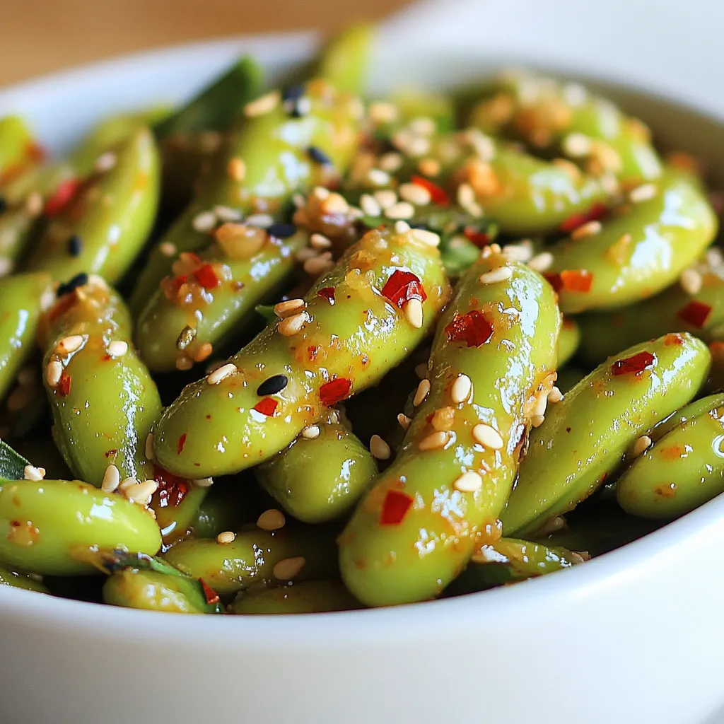 - 2 cups edamame in pods (fresh or frozen) - 3 tablespoons olive oil - 6 cloves garlic, minced - 1 teaspoon red pepper flakes (adjust to taste) - 1 tablespoon soy sauce - 1 teaspoon sesame oil - 1 tablespoon lemon juice - Salt to taste - Sesame seeds for garnish (optional) Spicy garlic edamame is packed with nutrients. Each serving contains protein, fiber, and healthy fats. Edamame is low in calories, making it a great snack. The garlic adds antioxidants, while olive oil provides good fats. This dish is not only tasty but also healthy. The flavor of spicy garlic edamame is bold and exciting. You get a nice blend of savory and spicy. The garlic gives a rich aroma and taste. The red pepper flakes add heat, which you can adjust. Soy sauce brings umami, while lemon juice adds a fresh zing. Together, these flavors create a delightful experience for your taste buds. {{ingredient_image_1}} To start, if you have frozen edamame, bring a pot of water to a boil. Once it boils, add the edamame pods. Cook them for five minutes. This helps to soften them. After five minutes, drain the pods and set them aside. Fresh edamame can skip this step. Just rinse them well before cooking. Next, grab a large skillet and turn the heat to medium. Pour in three tablespoons of olive oil. Let the oil heat up for a minute. Then, add six minced garlic cloves. Sauté the garlic for one to two minutes. You want the garlic to smell good but not brown. If it browns, it can taste bitter. Now, it’s time to mix in some spice. Add one teaspoon of red pepper flakes to the skillet. Cook for another minute so the oil absorbs the heat. After that, toss in the cooked edamame pods. Make sure they are well-coated in the garlic oil mixture. Drizzle one tablespoon of soy sauce and one teaspoon of sesame oil over the edamame. Squeeze in one tablespoon of lemon juice for a fresh kick. Toss everything again to blend the flavors well. Season with salt to taste. Remove the skillet from heat. Finally, transfer the spicy garlic edamame to a serving dish. If you like, sprinkle sesame seeds on top for a nice touch. To get a great garlic taste, use fresh garlic. I love using six cloves. Mince them well to release more flavor. Sauté the garlic for just one to two minutes. You want it fragrant, not brown. Brown garlic can taste bitter, which we don't want. If you like heat, add more red pepper flakes. Start with one teaspoon and taste. You can always add more if you want extra kick. For less spice, use half a teaspoon. This way, you can enjoy the garlic without too much heat. Serve Spicy Garlic Edamame in a bowl and top with sesame seeds. They add a nice crunch. Pair this dish with rice or noodles for a full meal. You can also serve it as an appetizer. It’s perfect for parties or movie nights. If you want to get creative, add a drizzle of chili oil for extra flavor. Pro Tips Use Fresh Edamame: For the best flavor and texture, opt for fresh edamame instead of frozen, if available. Adjust Spice Level: Feel free to modify the amount of red pepper flakes based on your heat preference; start with less and add more as needed. Garnish for Presentation: Adding sesame seeds not only enhances the flavor but also gives a beautiful finish to the dish. Serve Immediately: Enjoy the edamame while they are warm for the best taste and texture; they can lose their appeal if left to sit too long. {{image_2}} You can swap out edamame for other beans. Try using green peas or chickpeas. If you want less garlic, use only 3 cloves instead of 6. You can also replace olive oil with avocado oil for a different taste. For a gluten-free option, use tamari instead of soy sauce. Spicy garlic edamame tastes great with dips. Consider pairing it with a soy sauce mix or a spicy mayo. You can also serve it with a sweet chili sauce for a fun twist. Mixing in some lime juice can add a zesty punch too! You can steam the edamame instead of boiling it. This keeps them bright green and firm. If you like a smoky flavor, try grilling the edamame in a grill basket. You can also roast them in the oven at 400°F for 10-15 minutes for a crispy texture. These methods will change the taste, but they are still delicious! After you enjoy your spicy garlic edamame, store any leftovers in an airtight container. This keeps them fresh and tasty. Place the container in the fridge. They stay good for about 2 to 3 days. Make sure to cool them down first. If you store them hot, they may get mushy. To reheat your edamame, use a skillet for the best results. Heat a little olive oil over medium heat. Add the edamame and stir for about 3 to 5 minutes. This helps keep the garlic flavor strong. You can also use a microwave. Place the edamame in a bowl with a lid. Heat for about 1 to 2 minutes, stirring halfway. You can freeze leftover edamame if you want to save them for later. Place them in a freezer-safe bag. Make sure to squeeze out as much air as possible. They can last in the freezer for up to 2 months. When you're ready to eat, thaw them in the fridge overnight. Reheat them using the skillet or microwave method mentioned above. This way, you can enjoy your spicy garlic edamame anytime! Yes, you can use frozen edamame. It is quick and easy. Just boil them for five minutes. Drain them and set aside. Frozen edamame cooks fast and tastes great. I often keep some in my freezer for easy snacks. Absolutely! This recipe is vegan-friendly. It uses plant-based ingredients only. The edamame, olive oil, and garlic are all vegan. Enjoy this dish guilt-free, knowing it fits a vegan diet. To make this dish milder, reduce the red pepper flakes. You can start with half a teaspoon. Taste it and add more if you want more heat. Another way is to add a bit of extra olive oil. This will help tone down the spice. This blog post shows you how to make delicious Spicy Garlic Edamame. We covered what ingredients you need, their nutrition, and the taste. You learned step-by-step how to cook and combine flavors. We offered tips f