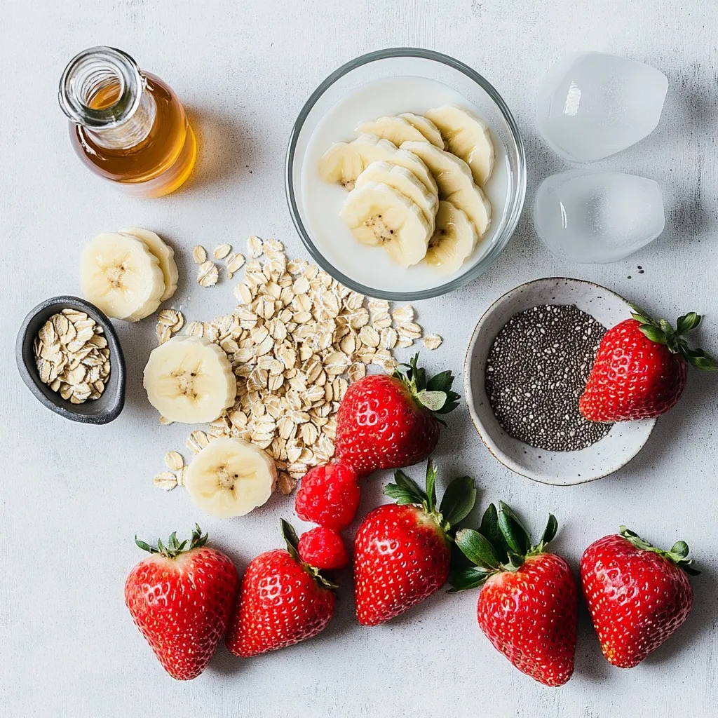 To make a tasty Strawberry Banana Oat Smoothie, gather these fresh ingredients: